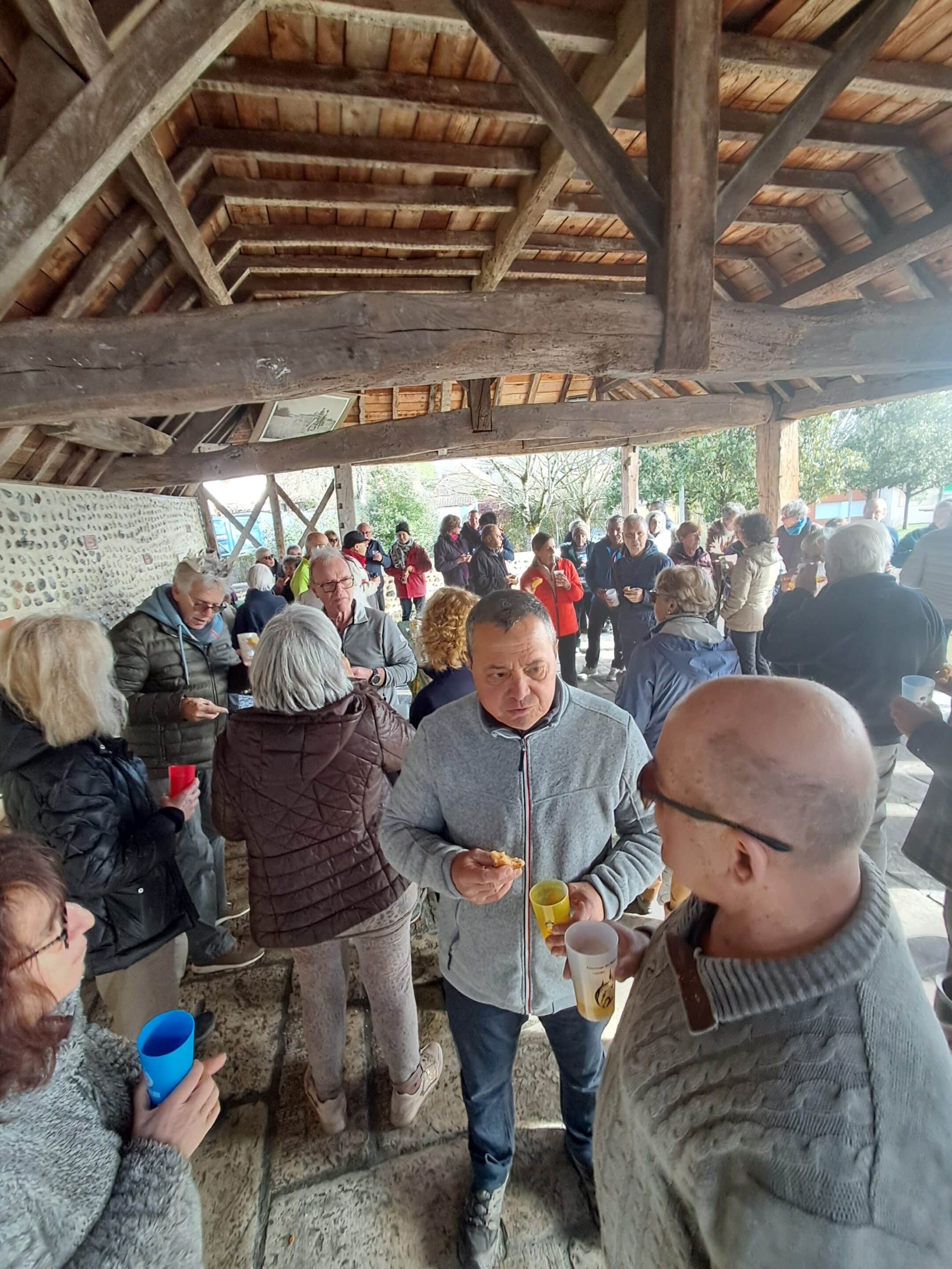 Les marcheurs ont partagé la galette des rois, sous le préau de la place du village